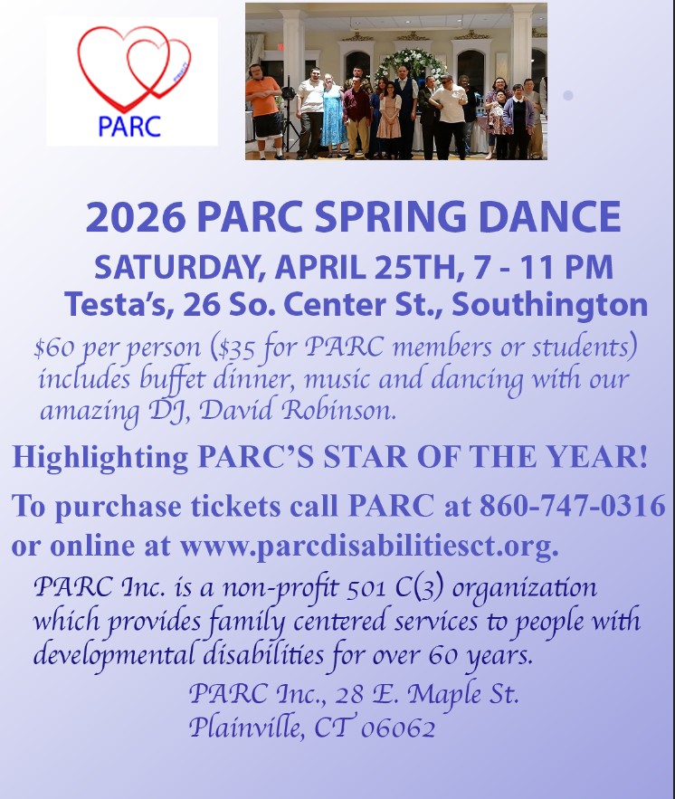 Since 1957, PARC, Inc., has advocated and protected the human rights of people with intellectual and developmental disabilities by actively supporting full inclusion in the community. PARC nurtures confidence and self-esteem by fostering talents and social skills through a wide variety of programs including Camp Trumbull, Adult Life Skills, Healthy Living Activities, and more. PARC serves more than 50 people ages 10 to 80 from Plainville and nearby towns.